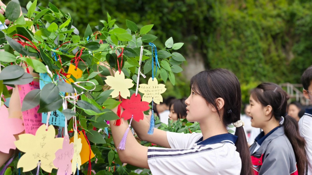 ▲学生在“5·25”心理健康节上挂祝福卡